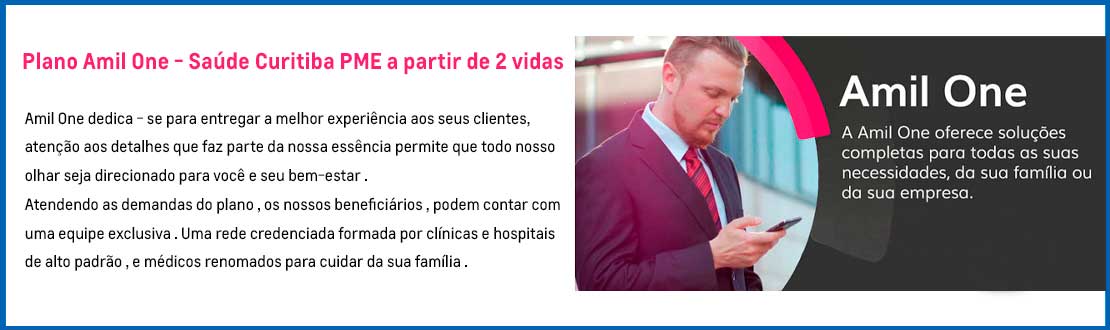 A Amil One oferece soluções completas para todas as necessidades, conta com os melhores hospitais, laboratórios, médicos e Clínicas do país, a sua melhor experiência em saúde e bem estar. Líder no segmento premium, os planos médicos empresarial da Linha Amil One oferece o que há de melhor, aliando conveniência e exclusividade, atendimento moderno e soluções completas para um público que aprecia um serviço diferenciado cobertura nacional e internacional.