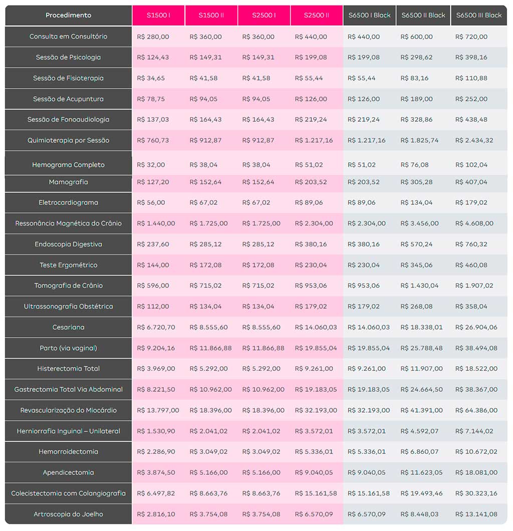 24 Meses: Não haverá redução nos casos de cirurgia bariátrica, obesidade mórbida, cirurgia de refração, diálise, hemodiálise, transplante, Neuro Cirurgia, cirurgia Ortopédica, Hérnia de Disco, Desvio de Coluna e de Articulações, quimioterapia, radioterapia, prótese e órtese e material de osteossíntese.